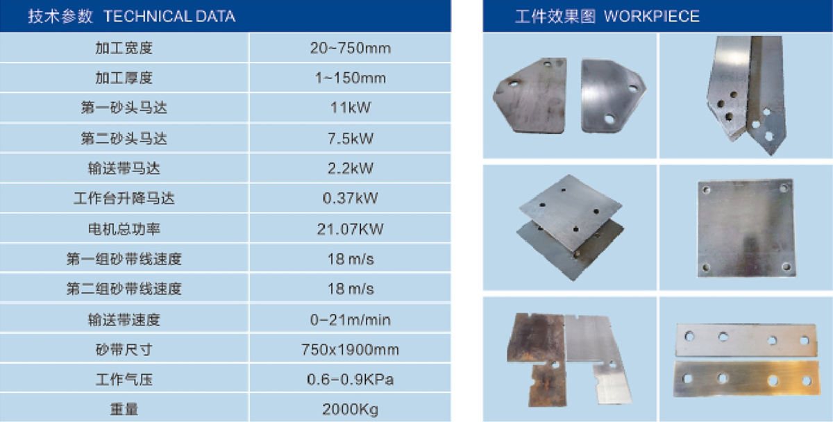 该设备适用于激光切割、等离子切割、火焰切割、冲剪下料、机加工的毛刺、熔渣的去除等功能选配。可进行去毛刺、拉丝、倒角、抛光等功能选配,是为客户量身打造适合客户的金属表面加工设备。适合加工:碳钢板、不锈钢板、铝板、铜板等金属材料。