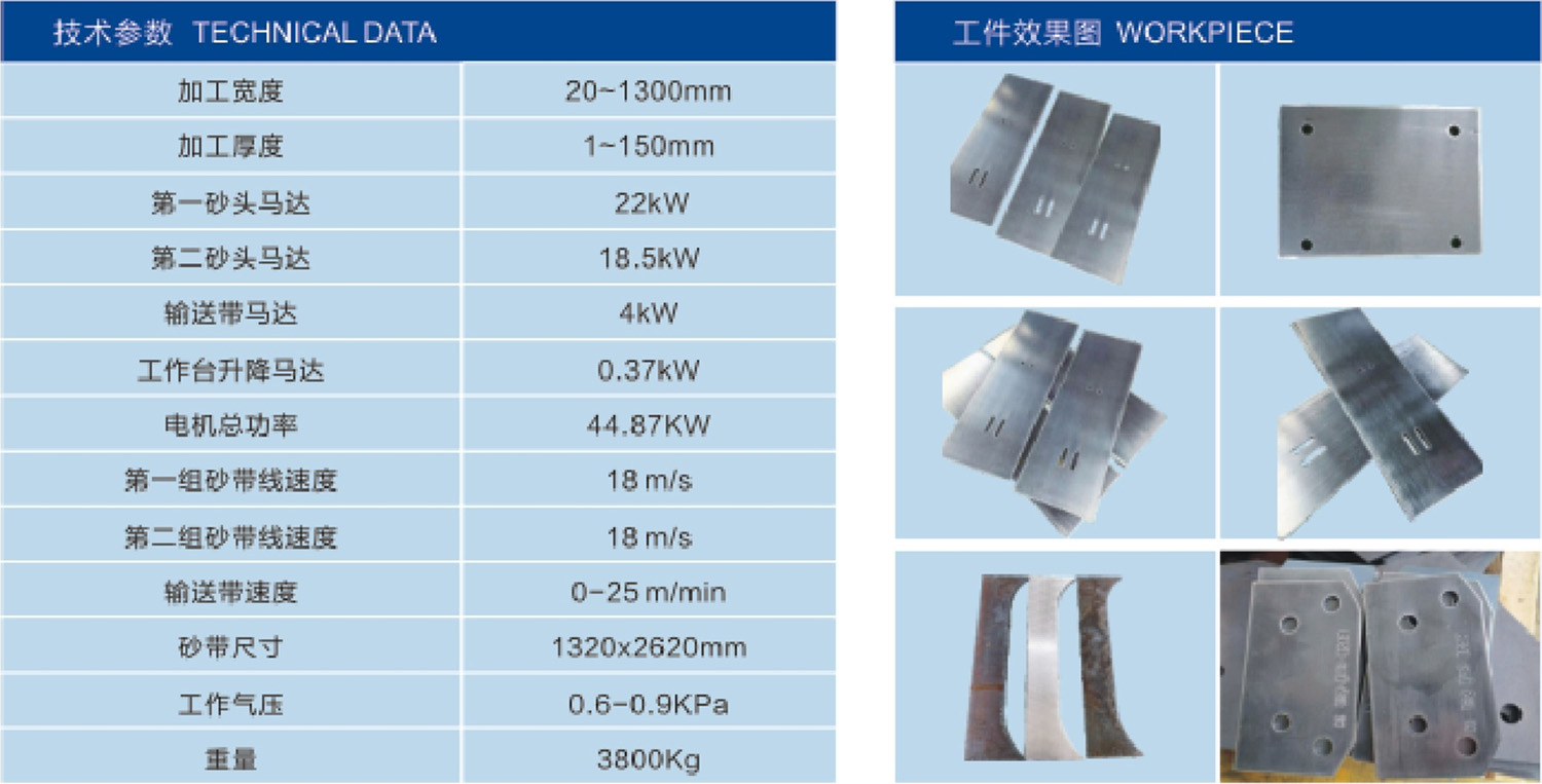 该设备适用于激光切割、等离子切割、火焰切割、冲剪下料、机加工的毛刺、熔渣的去除等功能选配。可进行去毛刺、拉丝、倒角、抛光等功能选配,是为客户量身打造适合客户的金属表面加工设备。适合加工:碳钢板、不锈钢板、铝板、铜板等金属材料。